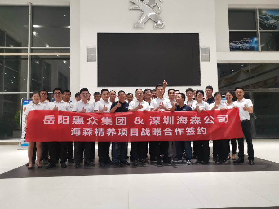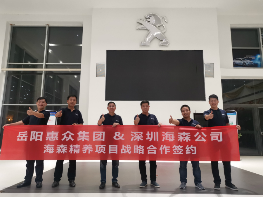 湖南分部消息:2019年8月13日,海森湖南分部邀请深圳总部贺总一行奔赴湖南岳阳,当天成功与岳阳惠众集团签约,双方将展开全面战略合作, 海森总部授权惠众集团全权代理海森品牌旗下所有汽车精养项目。此次成功签约一家有6家4s店的惠众集团,将会给海森品牌发展带来新的机遇!