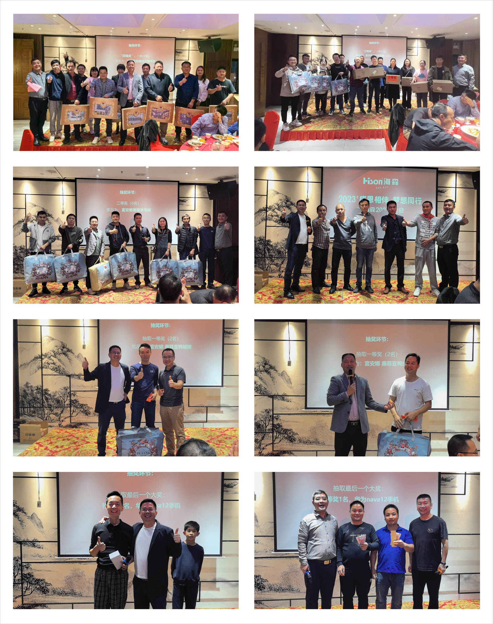二、2024年1月14日上午组织主题为“2024'海森中国 东西涌穿越”的团建活动;晚上于客家皇子百年客家菜(坂田店)举办主题为:“2023年感恩相伴,梦想同行 暨 2023年海森年会”,与会邀请海森部分加盟商、代理商、经销商,以及公司全体同仁及家属。